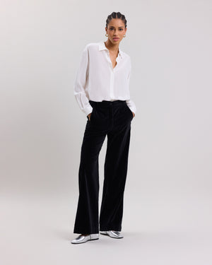 Pantalon Femme en velours lisse à rayures Noir Pandore