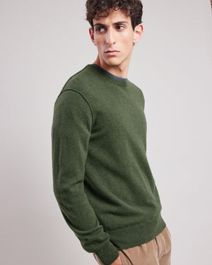 Pull homme à col rond avec coutures apparentes. Bords-côtes au col, aux poignets et à la taille.